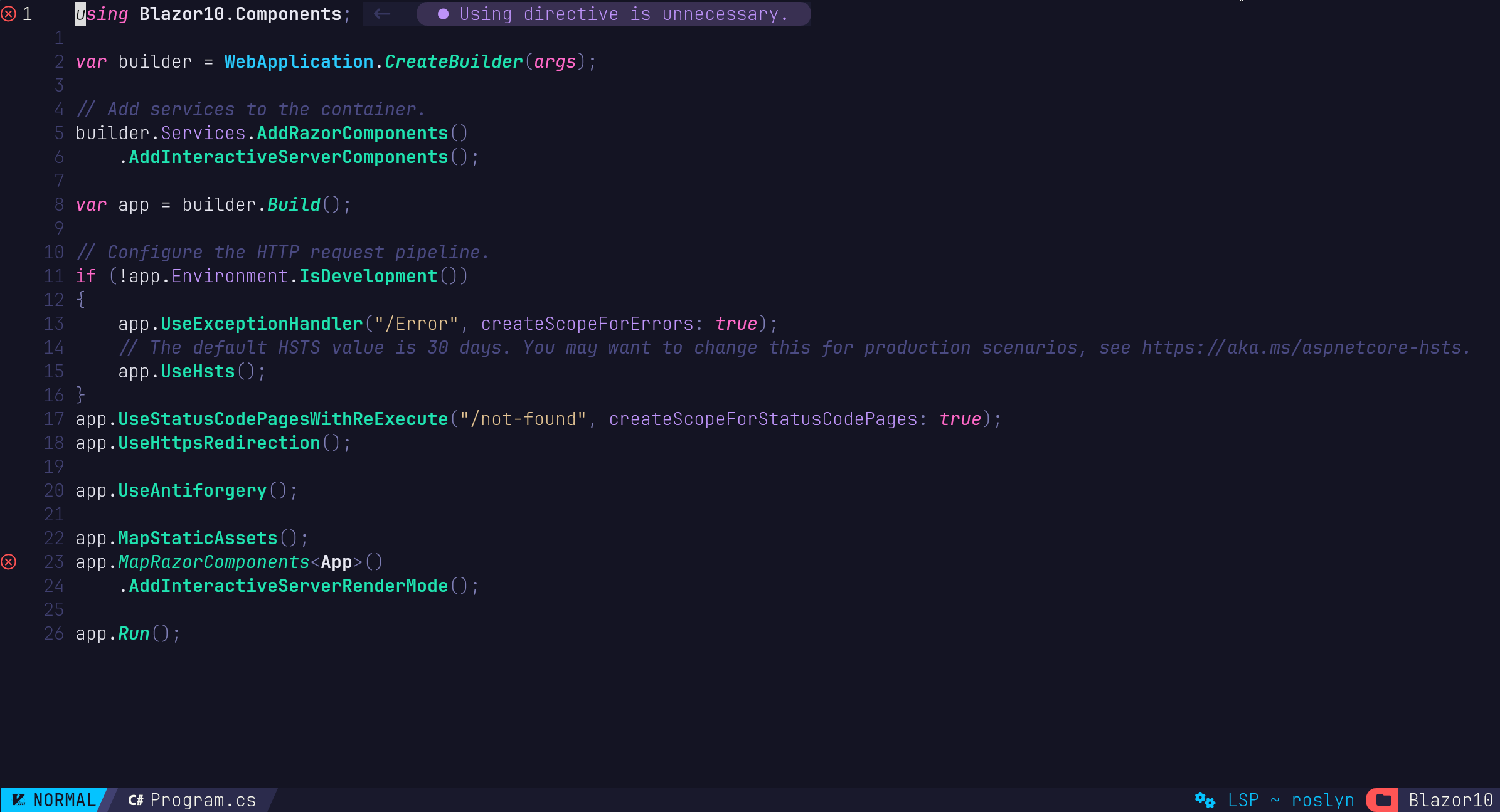 Program.cs - "Using directive is unnecessary."